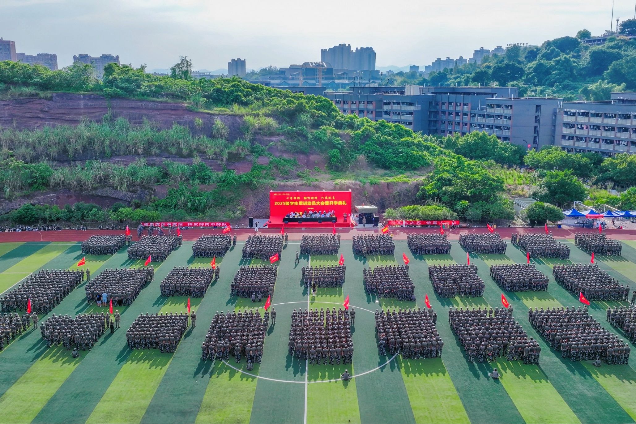 2025年9月16日上午,我校在学校运动场举行2025级新生开学典礼暨军训动员大会。校长许锡宾,书记唐加祥,铜梁区人武部参谋长蒲怀彪中校,常务副校长肖跃军,副校长梁挺、徐永恒、叶荫、符程美、许世虎、陈和平,各职能部门、二级学院主要负责人、学工领导齐聚一堂,共同见证这一重要时刻。仪式由军训团政委及军训总指挥龙行友主持。