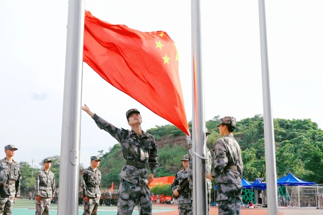大会在庄严的氛围中拉开序幕,由国防班组成的升旗仪仗队迈着整齐有力的步伐,护送国旗走向升旗台。伴随着激昂的国歌声,鲜艳的五星红旗冉冉升起,全体人员肃立,向国旗行注目礼,表达对祖国的无限热爱和崇高敬意。