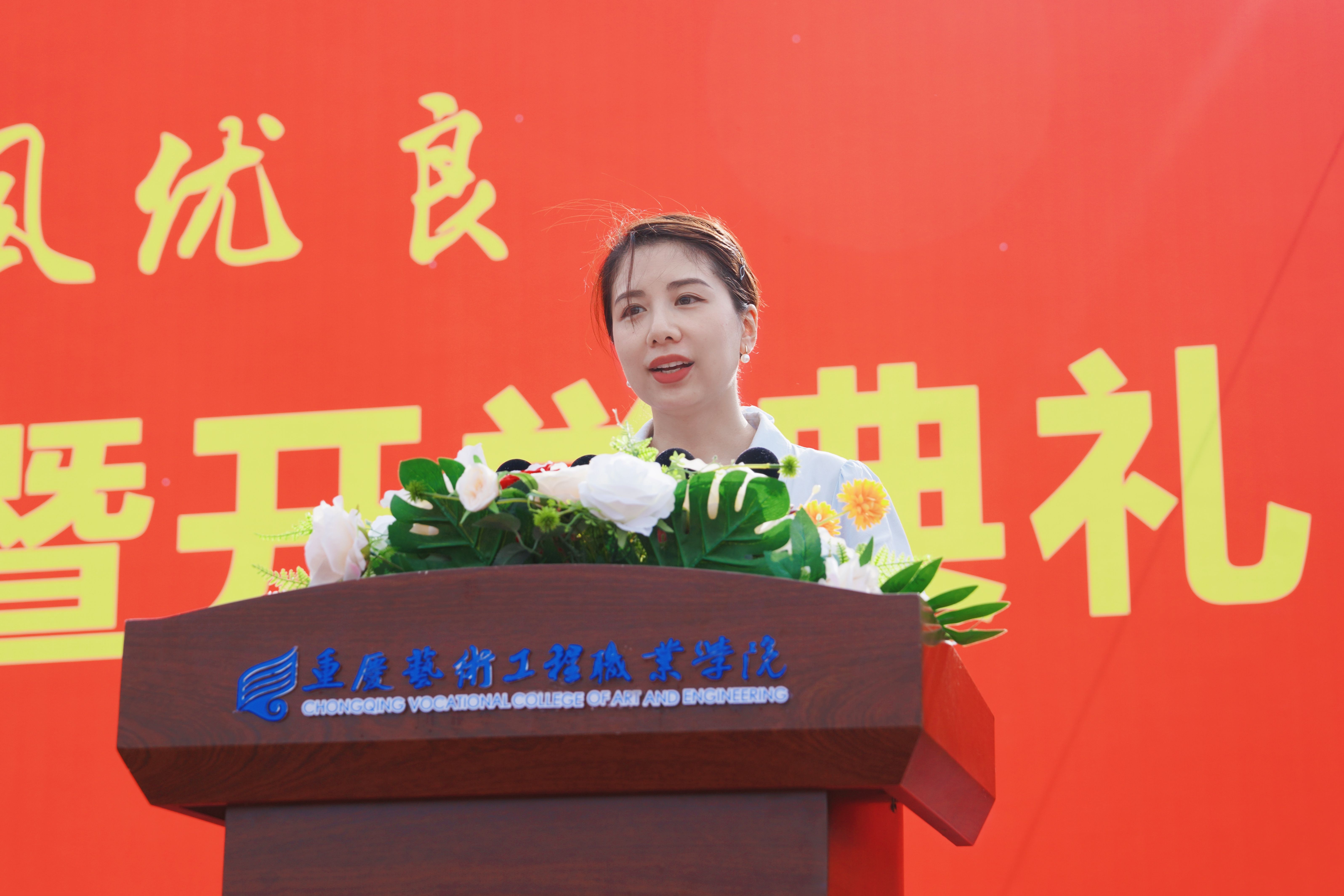 专任教师代表吴凡用温暖而有力的话语对新同学们寄予厚望。她鼓励同学们不要轻言放弃,那些看似艰难的道路,往往是成长的人生“垫脚石”。她代表全体老师热烈欢迎新同学们加入艺工这个温暖的大家庭,祝愿同学们在这里既能在艺术的天空里自由翱翔,又能在工程的土地上扎实成长,实现全面发展。