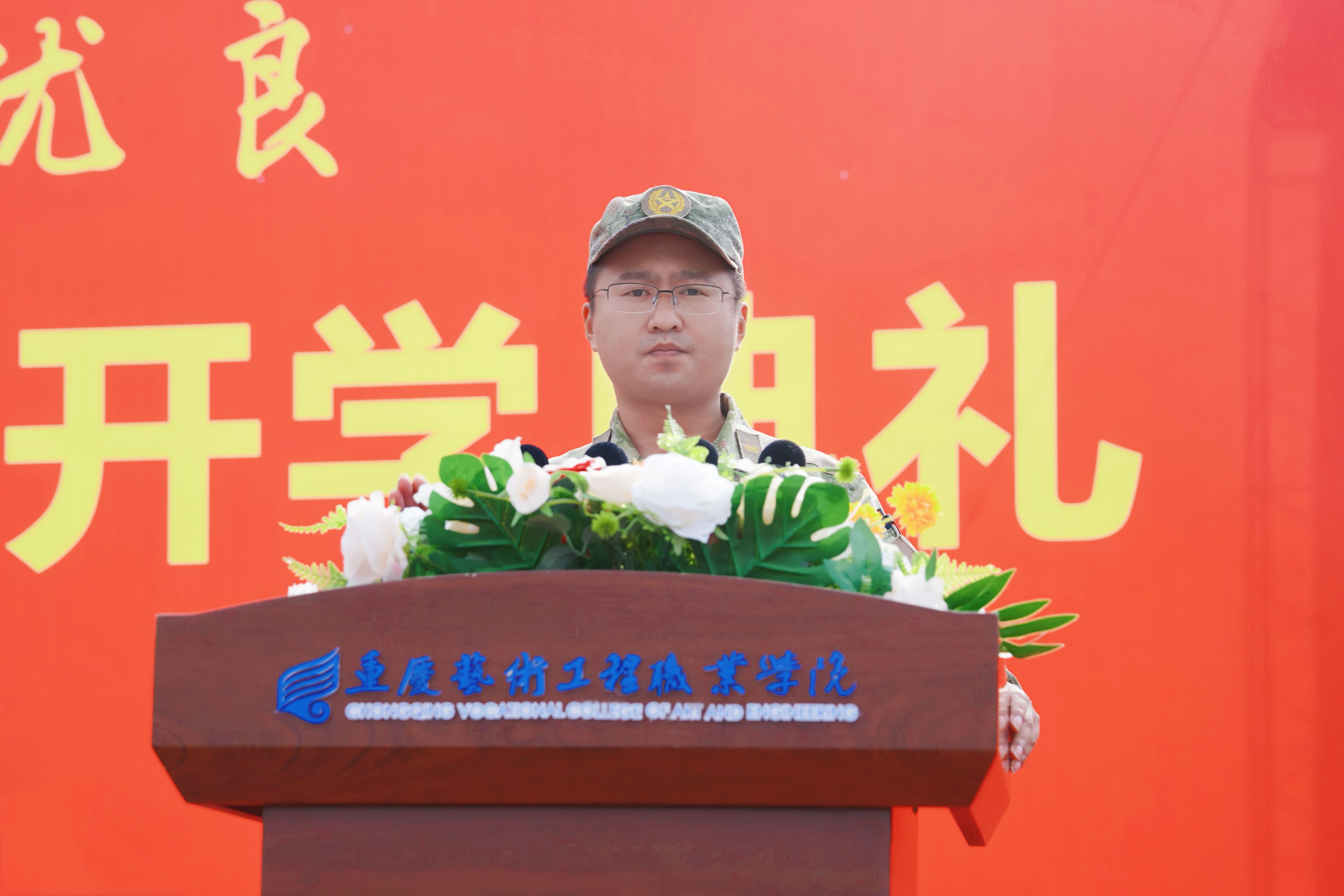 承训教官代表孙名扬发言表示,教官团队将以身作则,树立军人标杆,科学组训,耐心指导,注重每一个动作的规范,确保每位同学都能掌握基本动作和军事能力。希望同学们要一切服从命令,严守纪律,一切行动听指挥,要迎难而上,永不言弃;要团结协作,共赴荣誉;要科学统筹,确保安全有效。