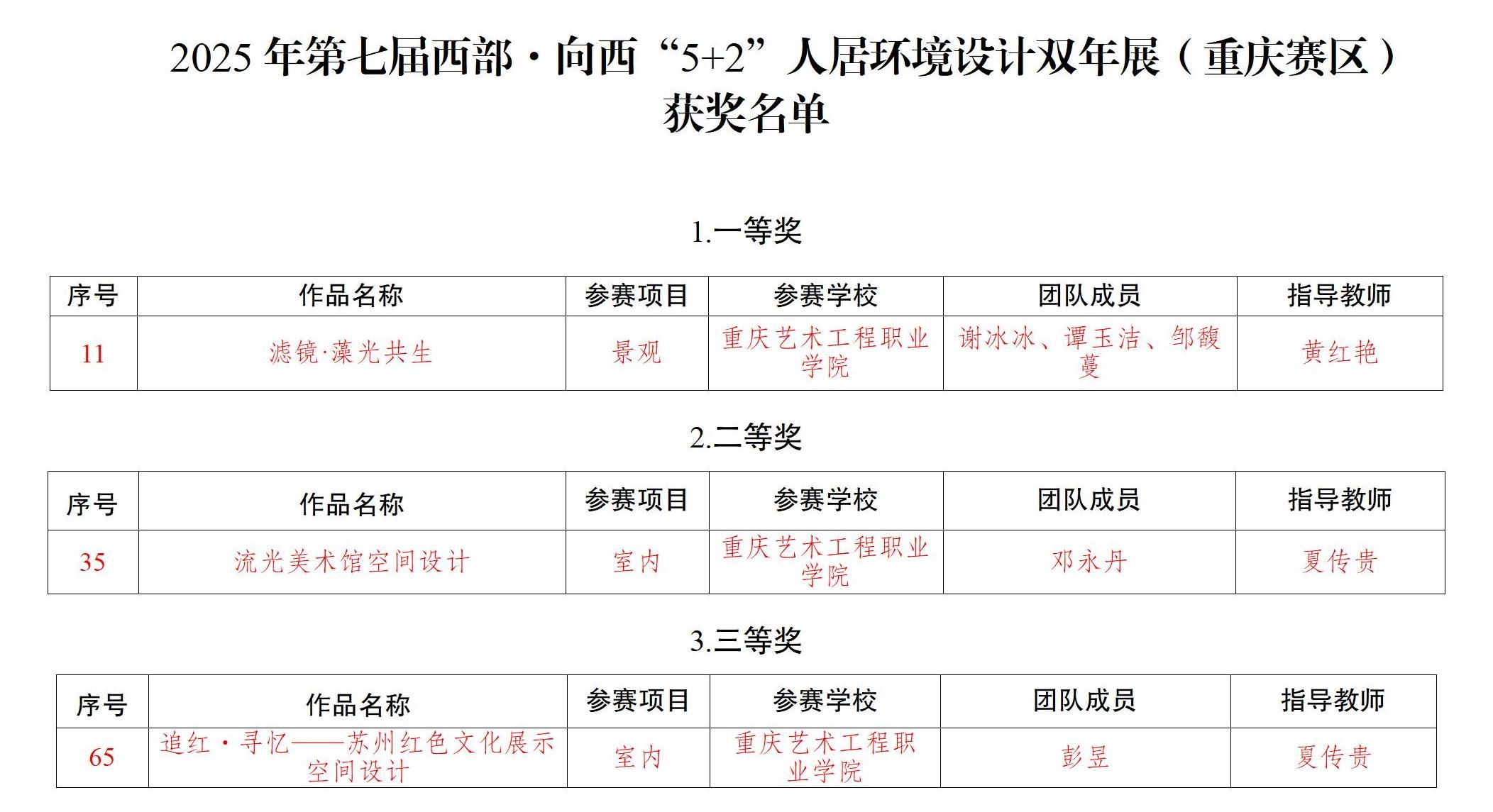 艺工师生在2025年第七届西部·向西“5 2”人居环境设计双年展(重庆赛区)中斩获多项荣誉