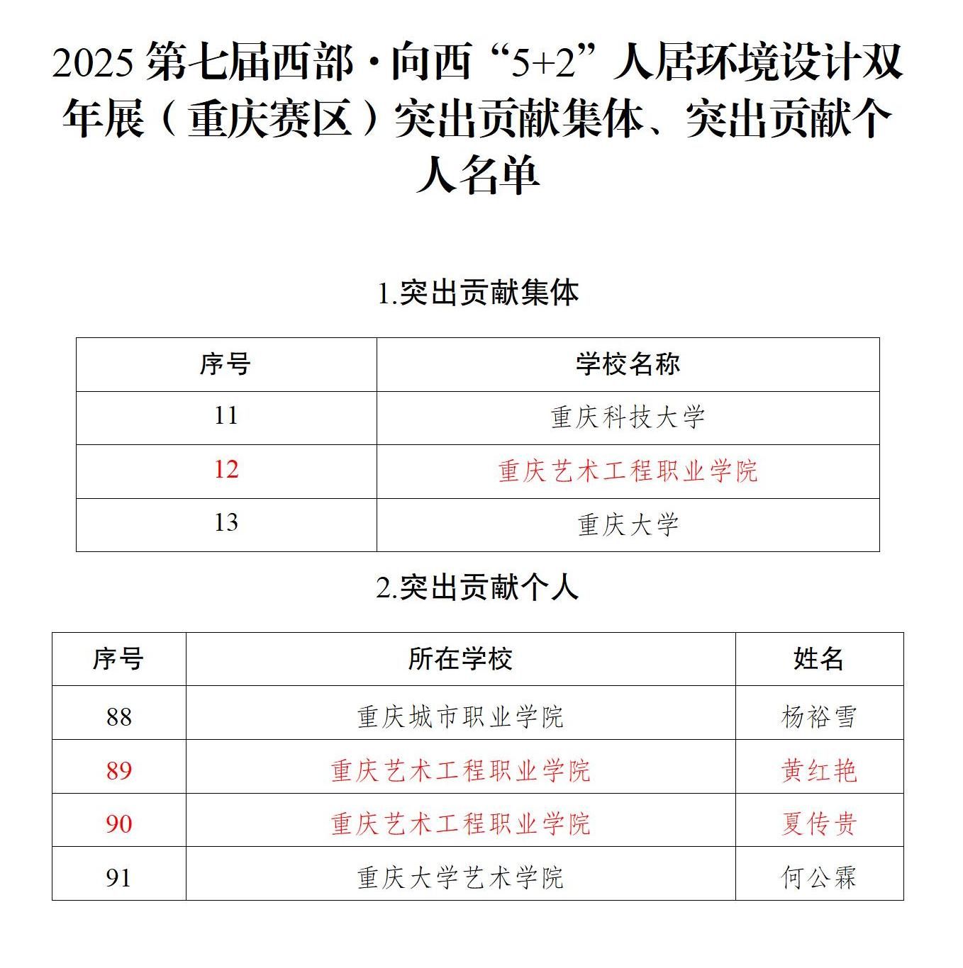 近日,重庆市教育委员会发布了关于2025年第七届西部·向西“5 2”人居环境设计双年展获奖情况的通报。本次评选共产生一等奖23个、二等奖44个、三等奖83个、突出贡献集体15个、突出贡献个人109名。