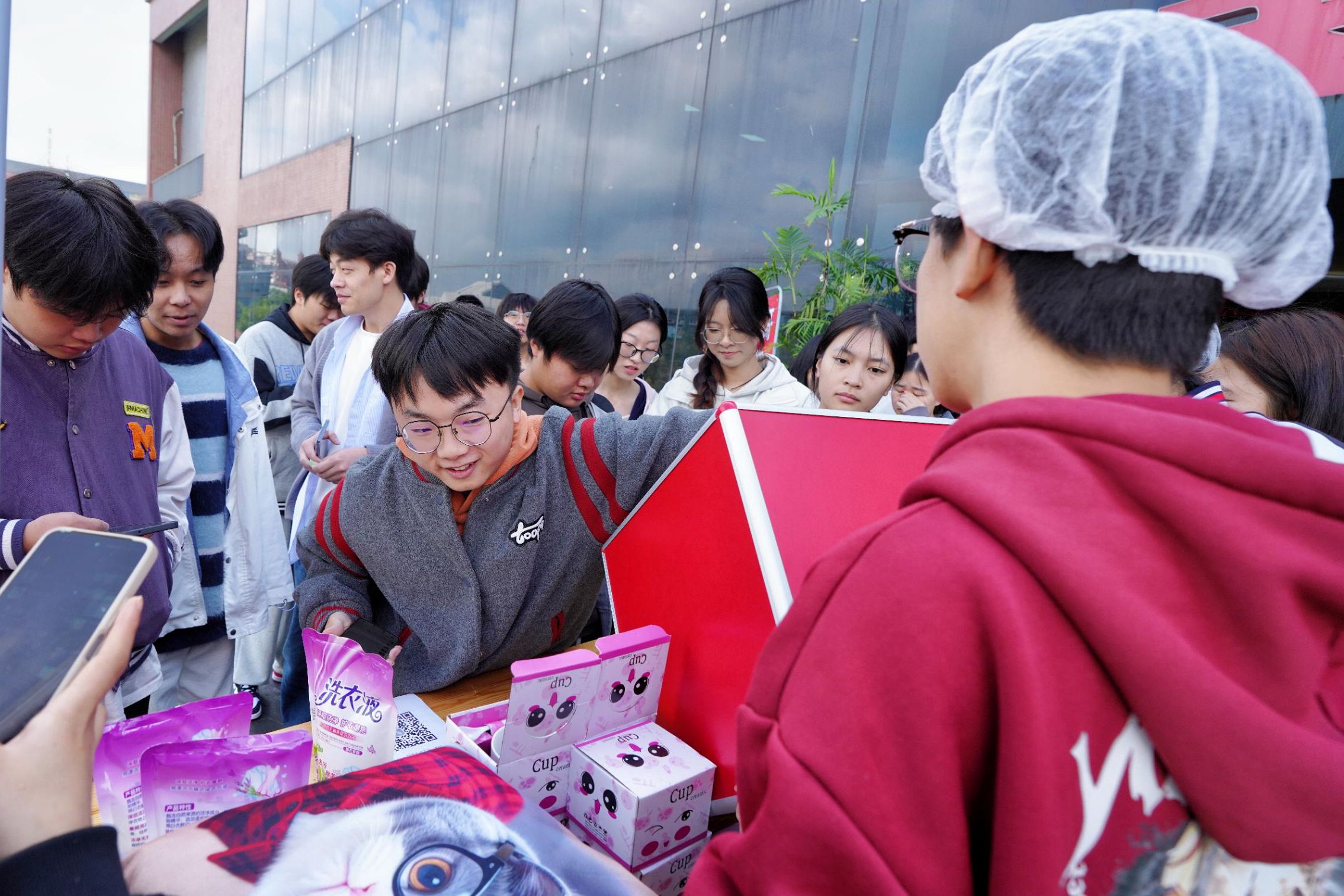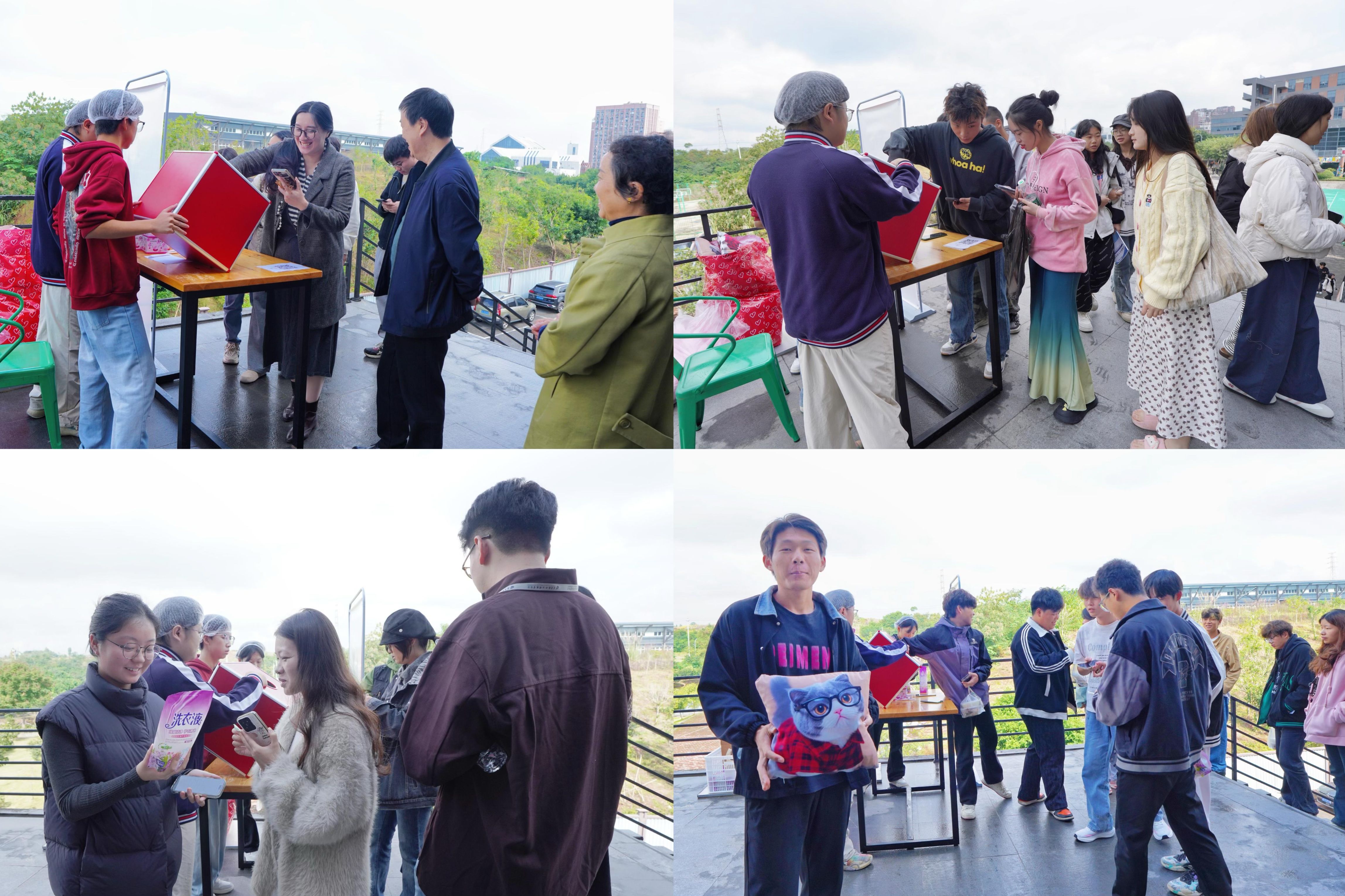 至活动第二日,天气转晴,暖阳高照,现场氛围更为火爆。食堂二楼入口处早早已排起长队,秩序井然。随着“霸王餐”资格、精美猫抱枕、时尚抱抱熊等礼品陆续揭晓,中奖喜讯频传,现场掌声与欢呼此起彼伏。不少同学在收获惊喜之余,主动邀约友人共同参与,分享喜悦时刻。