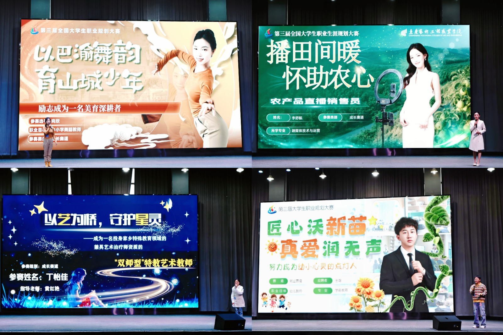 比赛开始,符程美副校长宣读《第三届全国大学生职业规划大赛重庆艺术工程职业学院校赛决赛评审规则》,为比赛公平公正奠定基础,也让选手明确方向。