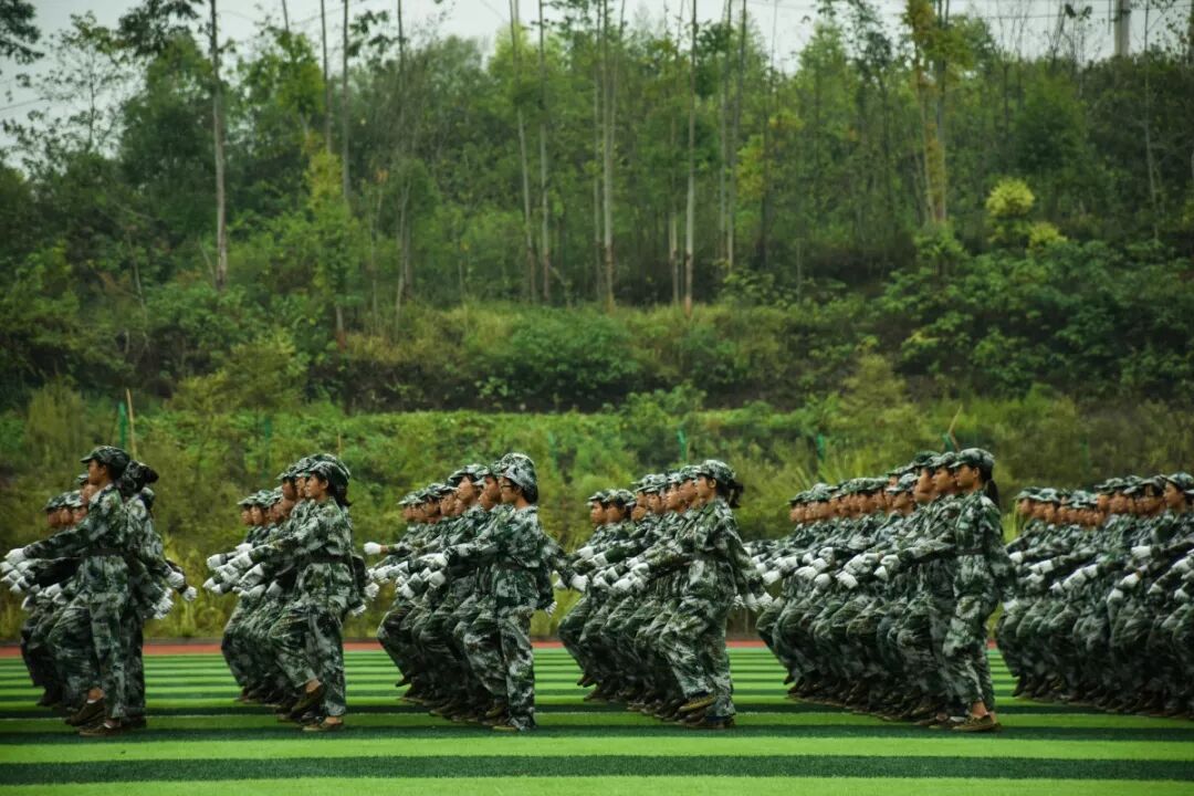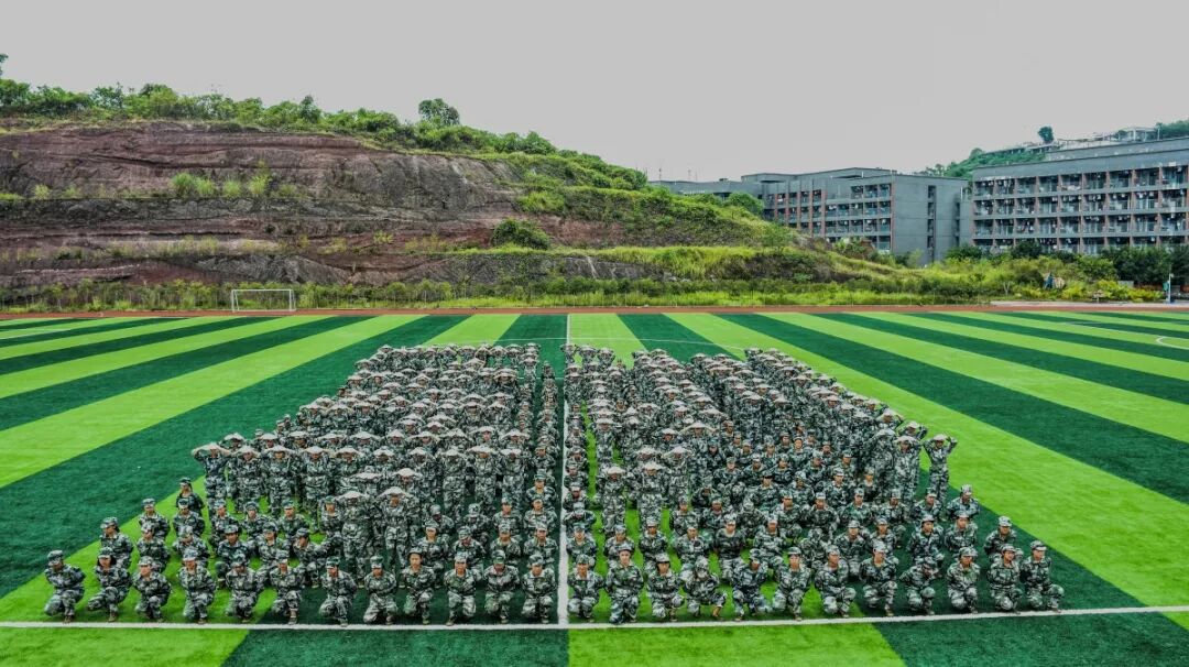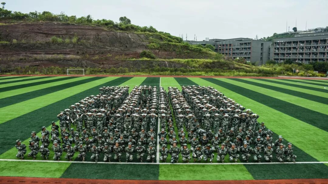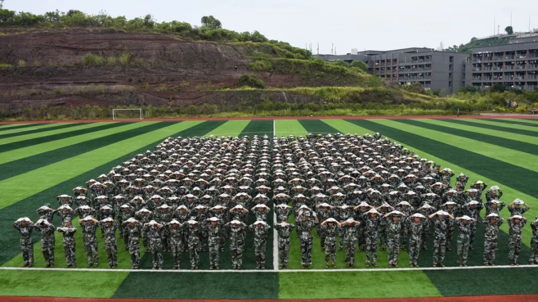 2018级全体新生以军训连为单位,汇成一个阵容庞大的军训团,整齐地在绿茵场上列队,等待学校和军训团领导的检阅。在欢快的军歌声中,许锡宾校长,刘世杰书记,铜梁区人民武装部派驻我校的军训团团长牟启东,陆平、梁挺、徐永恒副校长,张青平校长助理,各二级学院、各部门负责人,走上军训汇报演出主席台。